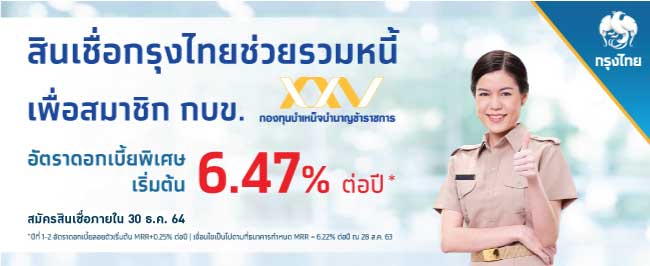 กองท นบำเหน จบำนาญข าราชการ กบข มาแล ว 5 ส นเช อกร งไทยอ ตราดอกเบ ยพ เศษเพ อสมาช ก กบข โดยเฉพาะ ส นเช อกร งไทยธนว ฏ วงเง นพร อมใช ส นเช ออเนกประสงค เง นก อนช วยเพ มสภาพคล อง ส นเช อกร งไทยช วยรวมหน ม หน หลายท