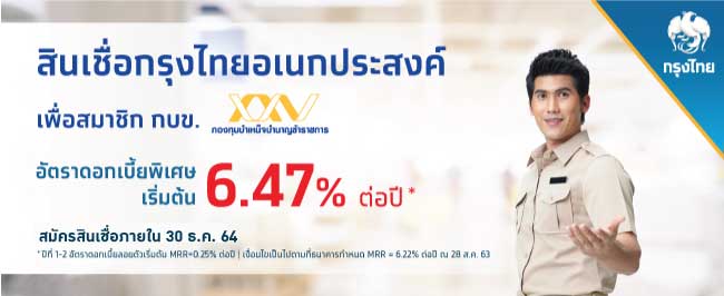 64 - 30 ธค. ธนาคารกรงไทย มสนเชออเนกประสงค เพอเปนสวสดการขาราชการ พนกงานราชการ และรฐวสาหกจ ทจะไดขอเสนอพเศษทงอตราดอกเบยตำ และวงเงนทสามารถกำหนดได ซงม.